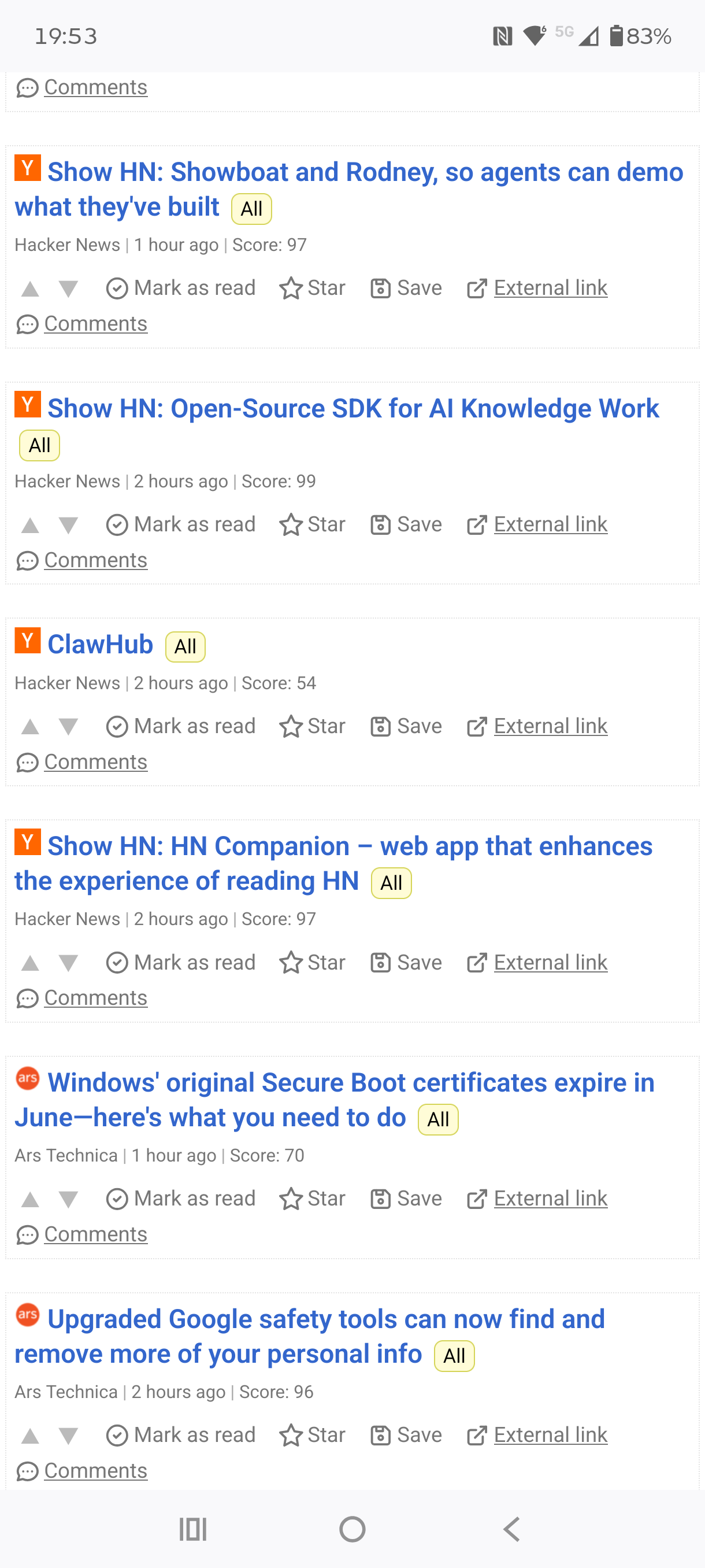 - A voting system, where the user (me) can upvote or downvote an article.